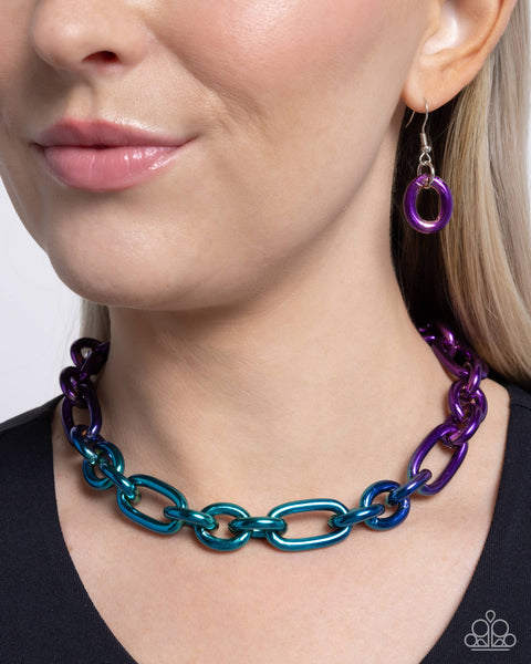 Featuring an ombréd look, a collection of purple abstract links gradually fade from dark blue to vibrant teal for a nuanced nightlife look. Features an adjustable clasp closure.